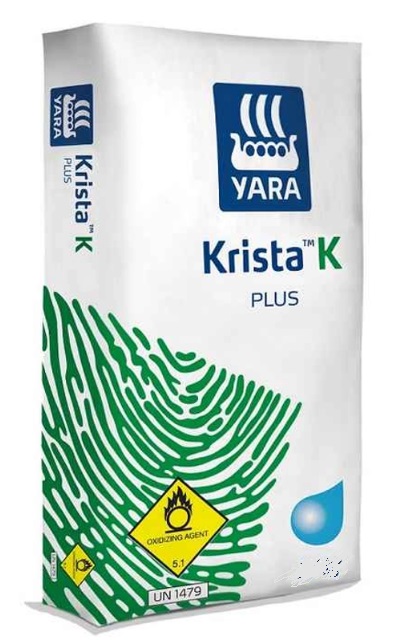 YaraTera™ Krista™ K Plus nitrogént és káliumot tartalmazó öntöző műtrágya. Vízben teljesen és maradék nélkül oldódik, bármilyen öntözési rendszerrel kijuttatható. Nitrát-nitrogén tartalma közvetlenül felvehető, azonnal megindítja a növekedést, nem kötődik le a talajban, így rögtön a növények rendelkezésére áll. Növeli egyéb tápelemek, mint a kálium, kalcium és magnézium felvételét is. Kálium tartalma javítja a többi tápelem hasznosulását, növeli a termést, javítja a termés minőségét, beltartalmi mutatóit, úgymint szárazanyag tartalom, cukortartalom, íz- és színanyagok. Javítja a növények vízháztartását, hozzájárul a környezeti stressz okozta hatások elviseléséhez. Alacsony N:K arányú (1:3), amely ideális az érés időszakában.